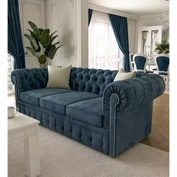 3 seater Blue chesterfield sofa